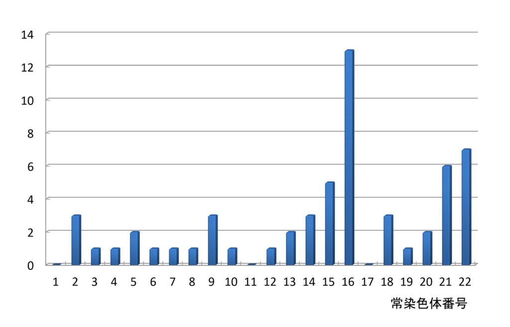 流産した胎児(胎芽)にみられた常染色体トリソミー(染色体が3本)のうち最も頻度が高いのは、16番染色体であり、22番、21番の順番でした(図10、文献38)。着床前染色体異数性検査preimplantation genetic testing for aneuploidy (PGT-A)とは、受精卵の異数性を調べて、正常胚を子宮内移植することで流産を予防する技術です。日本産科婦人科学会は、生命の廃棄、優生思想を助長するという倫理的理由のため、PGT-Aを長らく禁止してきました。しかし、日本でも妊娠の高年齢化が進み、社会のニーズが高まったとして、2014年3月からPGT-Aの議論が始まりました。
